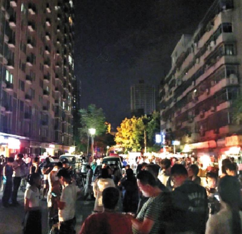 圖:九寨溝地震令附近多地有震感。圖為陝西西安市民緊急疏散/網絡圖片
