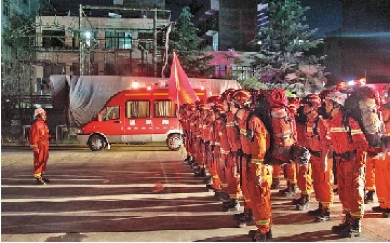 圖:目前四川全省共出動消防車輛396台,消防官兵1108人救援/網絡圖片