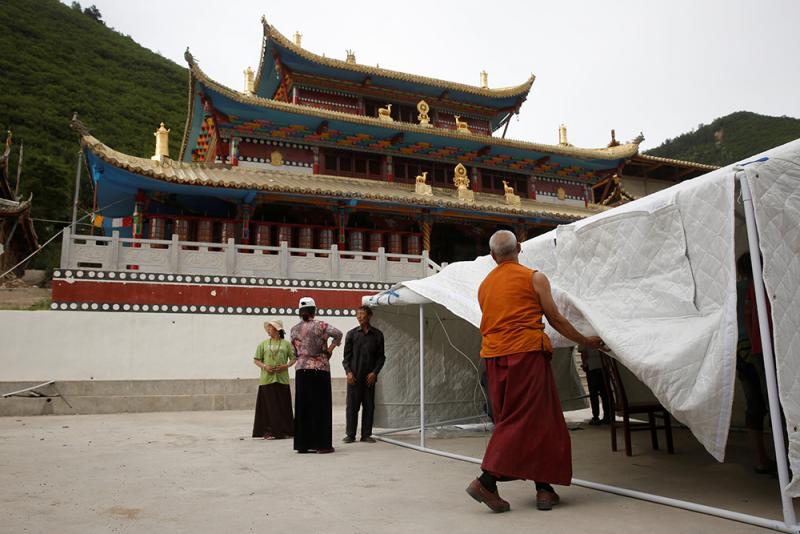面對災難,村民們空前團結,幫助疏導遊客、自備物資、架爐灶、搭帳篷。「眼前的困難是帳篷不夠,現在還是幾戶人家、十幾個人住一個帳篷。」漳扎村村民龍永秀說。