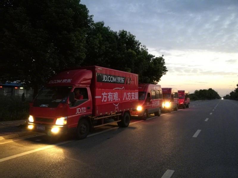 圖:京東利用其龐大物流網絡協助輸送救災物資/網絡圖片