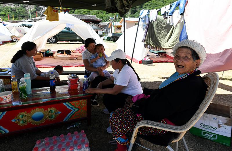 圖:在九寨溝荷葉寨村民集中安置點,受災居民住進臨時帳篷內/中新社