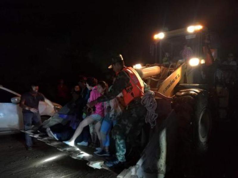 截至當日23時,所有人員逐步撤離到了景區管委會食堂內。