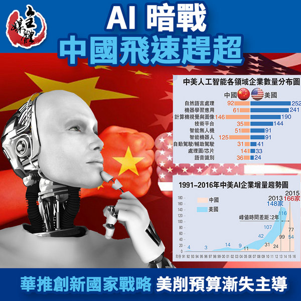 英美等西方國家最早開始了對人工智能(artificial intelligence,簡稱AI)的研究,雖然中國在此領域起步較晚,但近年來發展迅速。在未來的人工智能互聯網時代,中國有望從過去的追隨者,成為全球的引領者。中國政府近日發布的首個國家級人工智能發展計劃,政府和企業也為此投入大量人力、物力和財力,逐漸趕超勁敵美國。