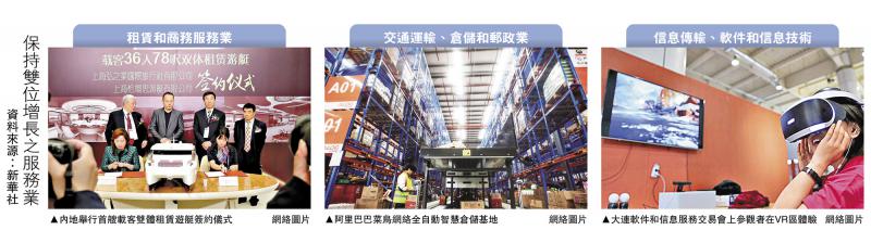 國家統計局數據顯示,7月份,全國服務業生產指數同比增長8.3%,增速比上月回落0.3個百分點,比上年同月加快0.5個百分點。1-7月份,全國服務業生產指數同比增長8.3%,比上年同期加快0.1個百分點。其中,信息傳輸、軟件和信息技術服務業,交通運輸、倉儲和郵政業,租賃和商務服務業保持兩位數增長。7月份服務業商務活動指數為53.1%,航空運輸業、互聯網及軟件信息技術服務等商務活動指數位於60%以上高位景氣區間。