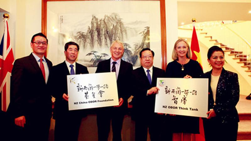 圖:年初中國駐奧克蘭總領館總領事許爾文(右一)見證新西蘭「一帶一路」基金會成立 網絡圖片