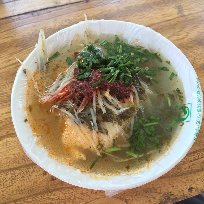 隴南地區最有名的小吃當數洋芋(薯仔)攪團,將洋芋蒸熟後剝皮,放入石臼中,再用帶着長長手柄的木槌使勁兒地砸,直到變成柔軟黏稠的洋芋泥。最後裝進盛有醋湯的碗裏,撒上油潑蒜、香菜和辣子,口感清香細滑。