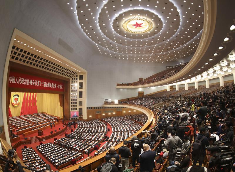 圖:中國人民政治協商會議第十三屆全國委員會第一次會議3日在北京人民大會堂開幕 中新社
