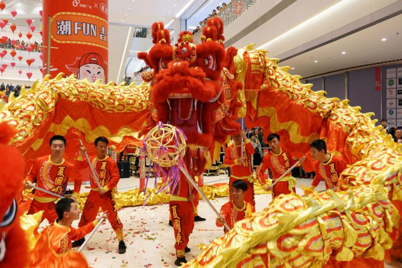 農曆正月十六,香港老字號夏國璋龍獅團空降大連恆隆廣場舞龍醒獅賀歲,精湛技藝獲觀眾點讚。1924年成立的該龍獅團至今已歷經四代相傳,勇奪七次世界醒獅比賽冠軍,被譽為「世界獅王之王」。