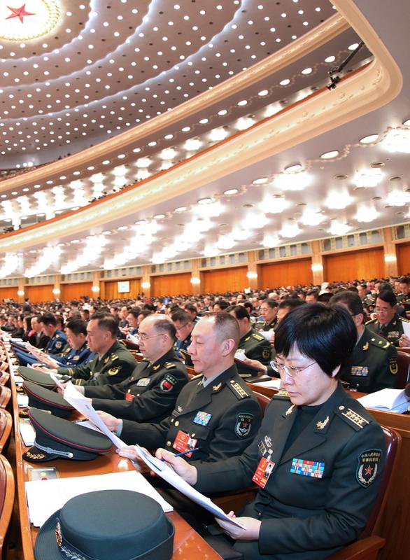 圖:在十三屆全國人大一次會議現場,代表們認真聽會/中新社
