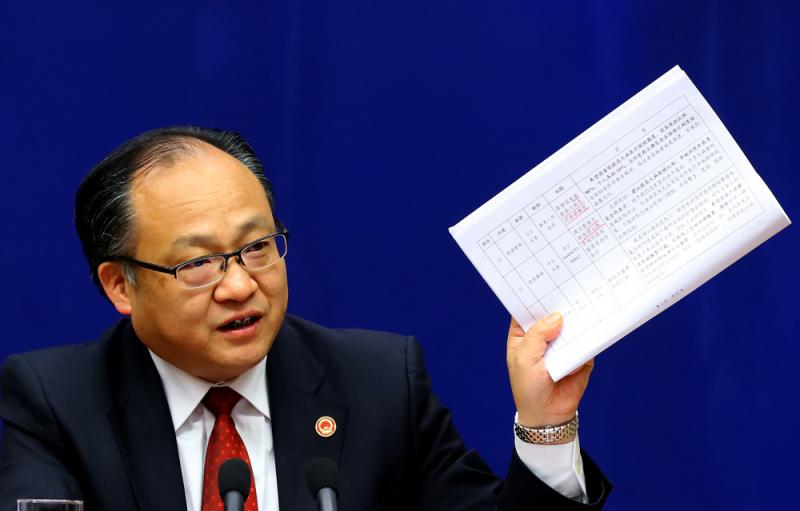 圖:國務院研究室主任黃守宏展示「我向總理說句話」網民建言精選/中新社