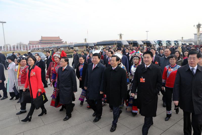 圖:3月5日,十三屆全國人大一次會議在北京人民大會堂開幕。圖為代表們步入會場/中新社