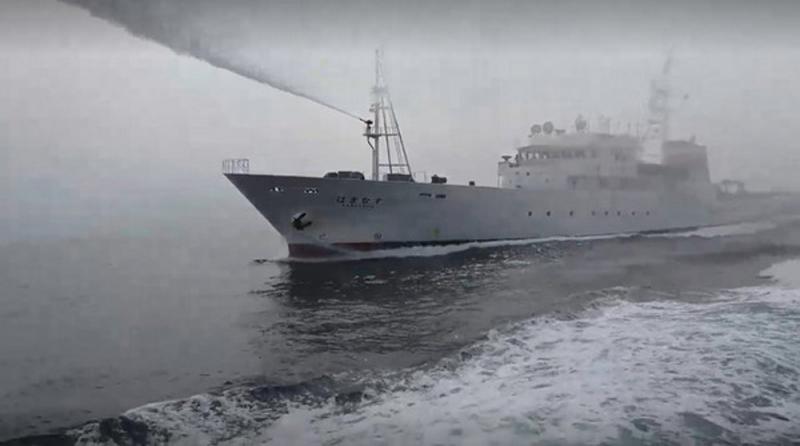 圖:台灣漁船在「台日重疊經濟海域」內遭日方船艦水炮攻擊驅趕/網絡圖片