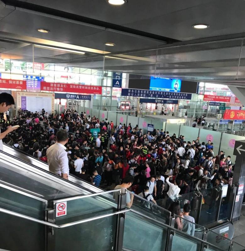記者在深圳北看到,候車大廳現場有部分乘客滯留,公告欄和廣播不斷播放列車停運通知。由懷化、武漢、南昌、柳州、長沙等內地多地始發至深圳北的高鐵改為運行至廣州南,由深圳北始發至其他城市的高鐵也改為廣州南始發,廣州南至深圳北、福田區間部分列車臨時停運。根據現場售票大廳公告欄上顯示,受設備故障影響,3月5日15點前由廣州南開往深圳北、福田方向的列車全部停運。