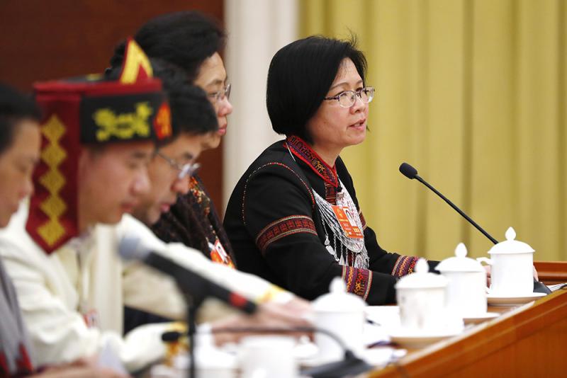 圖:十三屆全國人大一次會議海南省代表團在審議政府工作報告/中新社
