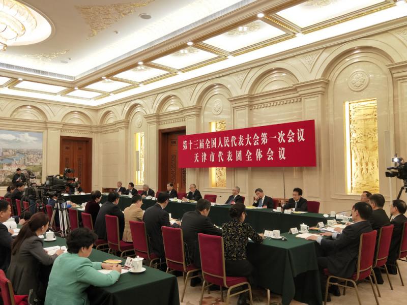 圖:天津代表團6日舉行全體會議 /朱燁攝