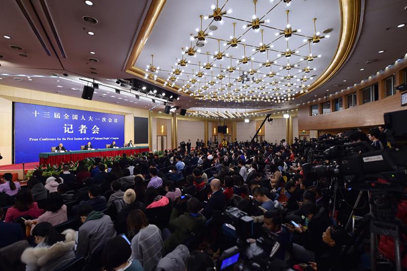 圖:十三屆全國人大一次會議新聞中心記者會現場 新華社