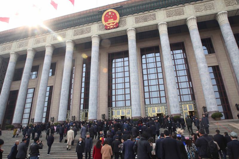 圖:9日下午,十三屆全國人大一次會議在北京人民大會堂舉行第二次全體會議/中通社