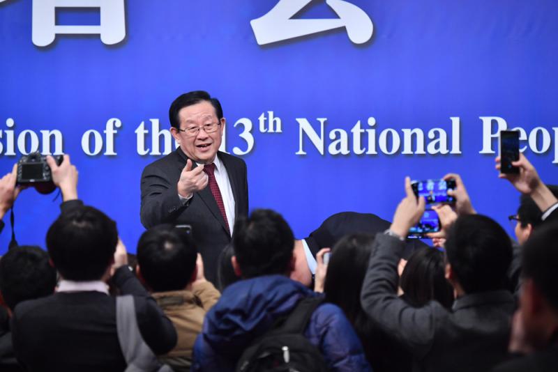 圖:10日,十三屆全國人大一次會議新聞中心舉行記者會,邀請科技部部長萬鋼等就「加快建設創新型國家」相關問題回答中外記者提問/新華社