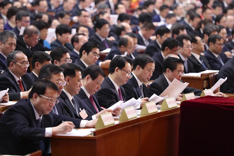 圖:13日,十三屆全國人大一次會議在京舉行第四次全體會議,聽取全國人大常委會關於監察法草案的說明、國務院關於國務院機構改革方案的說明/ 中新社