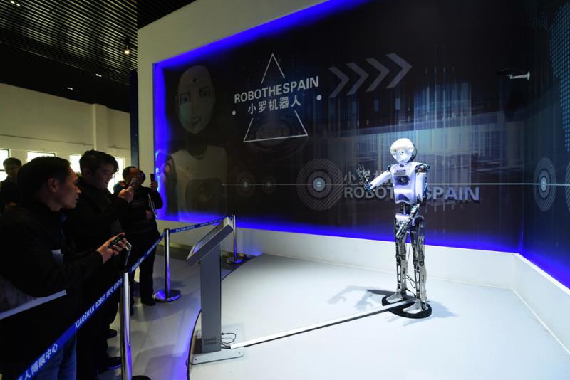 圖:在浙江杭州蕭山機器人博展中心,觀眾在觀看人工智能機器人表演 /新華社
