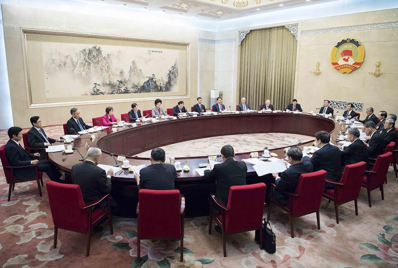 圖:15日,政協第十三屆全國委員會第一次主席會議在北京舉行。全國政協主席汪洋主持並講話 新華社