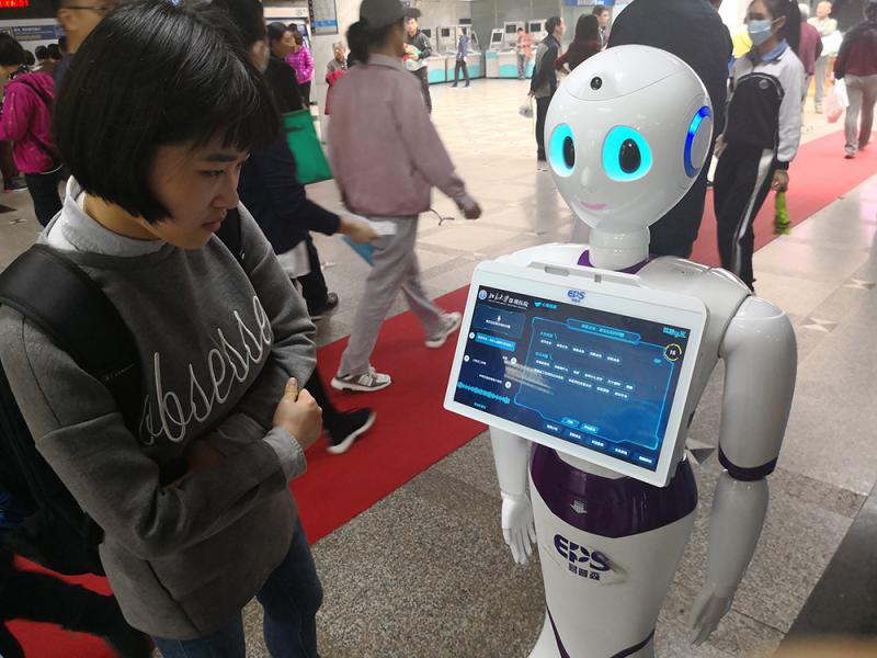 圖:智能機器人「小易」取代了人工導診 大公報記者郭若溪攝