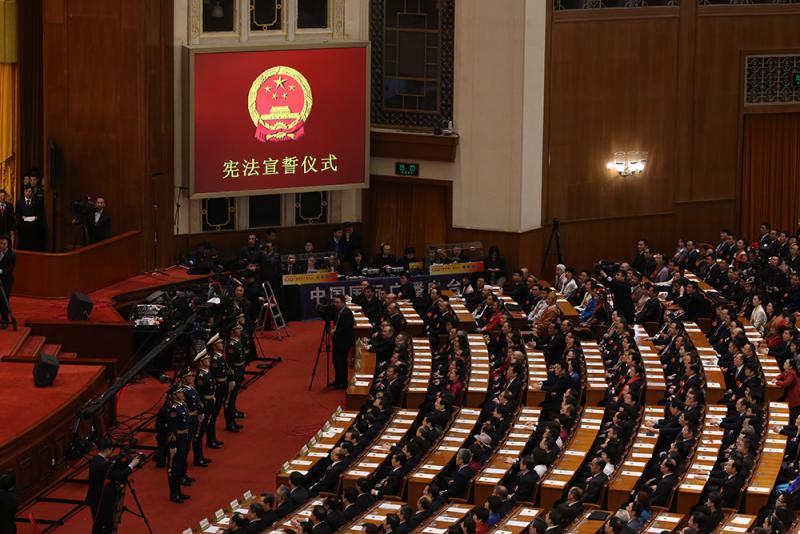 實踐證明,習近平總書記是新時代中國特色社會主義的開創者,是實現中華民族偉大復興中國夢的領航者,無愧為全黨擁護、人民愛戴的領袖,無愧為國家的掌舵者、人民的領路人。習近平總書記當選國家主席、中央軍委主席,體現了中國共產黨、中華人民共和國、中國人民解放軍領導人「三位一體」領導體制的制度安排,顯示了中國特色社會主義的獨特政治和制度優勢,為實現黨的十九大描繪的宏偉藍圖築牢堅實的政治根基、組織根基。