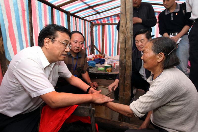 圖:2008年,李克強在四川慰問受災群眾/資料圖片