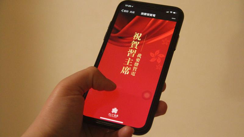 大公文匯傳媒集團全媒體新聞中心日前推出兩個凸顯香港味道、傳遞港人心聲的H5產品,採用虛擬電子賀卡、賀電(見圖)的形式,祝賀習近平全票當選國家主席、中央軍委主席。這一形式新穎、增強互動的表達方式迅速在香港讀者圈中獲得廣泛傳播,引起刷屏效應。有不少香港網友在祝賀習近平當選的同時留言表示,習主席全票當選是眾望所歸,祝福國家在他帶領下發展得更好。