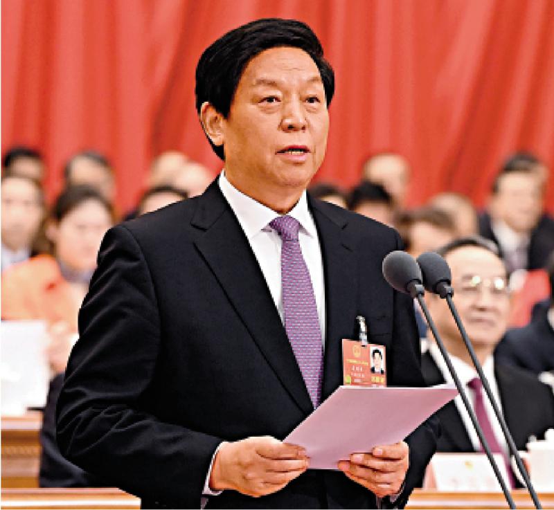 圖:20日,第十三屆全國人民代表大會第一次會議閉幕。大會執行主席、十三屆全國人大常委會委員長栗戰書主持閉幕會 新華社