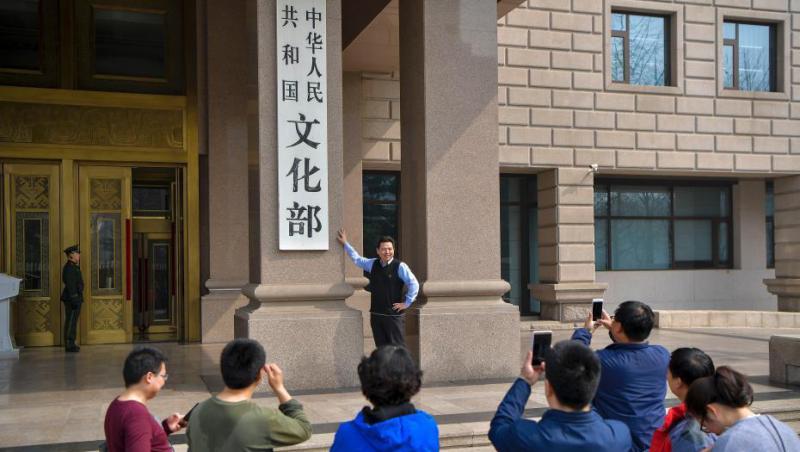 圖:13日,《國務院機構改革方案》提請十三屆全國人大審議。方案提出組建文化和旅遊部,不再保留文化部、國家旅遊局。當日下午文化部員工在文化部門前拍照網絡圖片