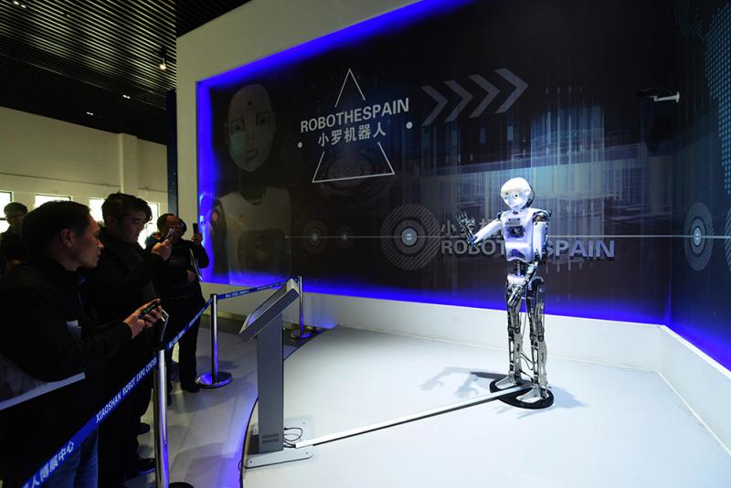 圖:觀眾在蕭山機器人博展中心觀看機器人表演 新華社