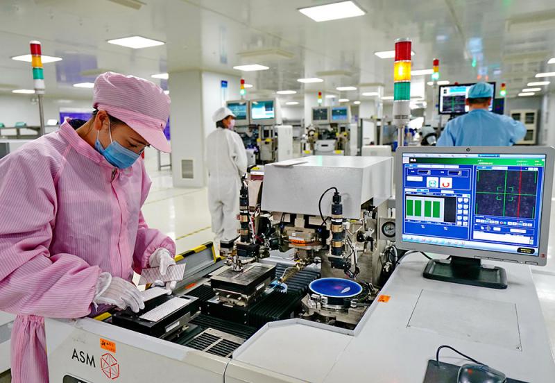 圖:廣東提倡深化工業互聯網發展應用,扶持企業轉型。圖為工人在內地一家照明企業生產車間工作 新華社