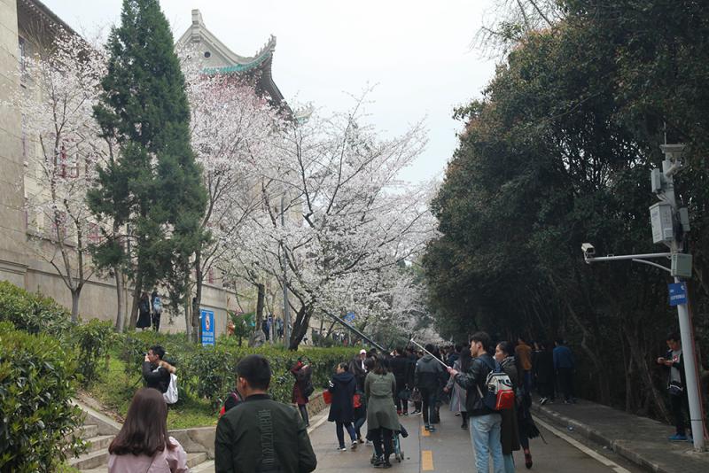 隨着天氣轉暖,內地著名的大學勝景─武漢大學櫻花季開啟,武大將於3月20日至4月2日期間對校園局部區域實行封閉管理,公眾可通過網上預約後持身份證「刷臉」進入武大校園賞櫻。22日當天,武大賞櫻核心區的櫻花已盛放,遊人三五成群前來觀賞。