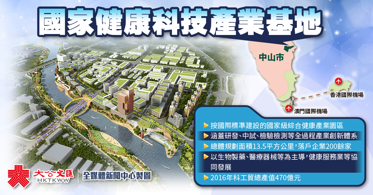 大公文匯全媒體報道:香港行政長官林鄭月娥今天(29日)下午到廣東中山國家健康科技產業基地參觀。該基地由國家科技部、廣東省人民政府和中山市人民政府於1994年聯合創辦,是按國際標準建設的國家級綜合健康產業園區。總體規劃面積13.5平方公里,落戶企業200餘家。現已形成了以生物製藥、醫療器械為主導產業,健康服務業協同發展的產業集群格局,2016年實現科工貿總產值470億元人民幣,約佔中山全市健康產業總產值的60%。