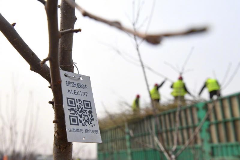 在雄安新區,每棵苗木上都掛着一個帶有二維碼的鋁製小標牌。中國雄安集團生態公司專家徐成立博士表示,這是它們的「專屬身份證」,二維碼鏈接着雄安森林大數據系統,通過它可查詢苗木的樹種、規格、位置、生長信息等,實現對苗木全生命過程監控。 (新華網)