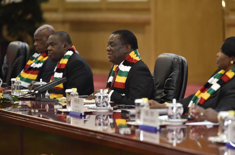 圖:津巴布韋總統姆南加古瓦(右)3日訪問北京\美聯社