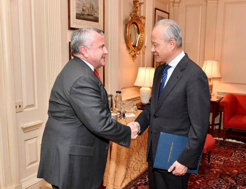 圖:中國駐美大使崔天凱4日會晤美國代理國務卿沙利文,促美停止對華「301調查」\網絡圖片