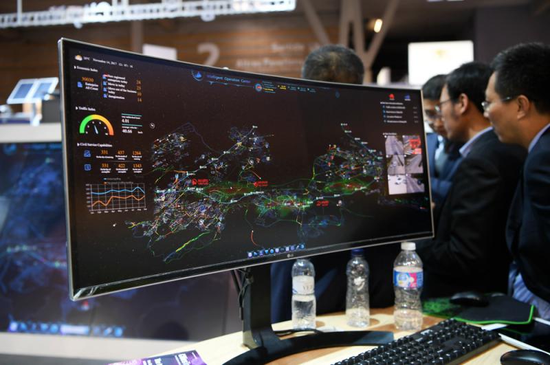 圖:在西班牙巴塞羅那全球智慧城市博覽會上,華為展出智慧城市管理界面\新華社