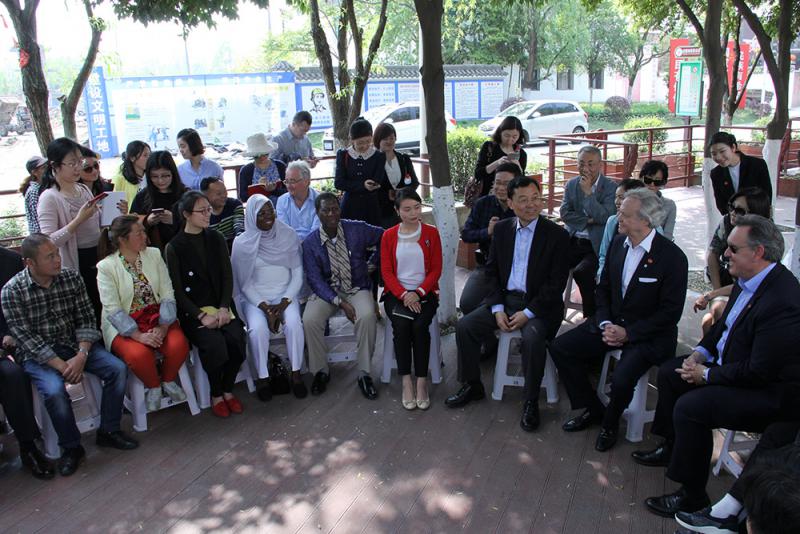 唐昌鎮戰旗村是農村經濟改革的一個樣本,2017年,戰旗村集體資產達到4600萬元人民幣,集體經濟收入462萬元,村民人均可支配收入達26000多元人民幣。座談會現場,沒有一個村幹部,但村民們與外賓面對面一點也不拘謹。他們充滿自信,幸福的微笑由衷地掛在臉上。