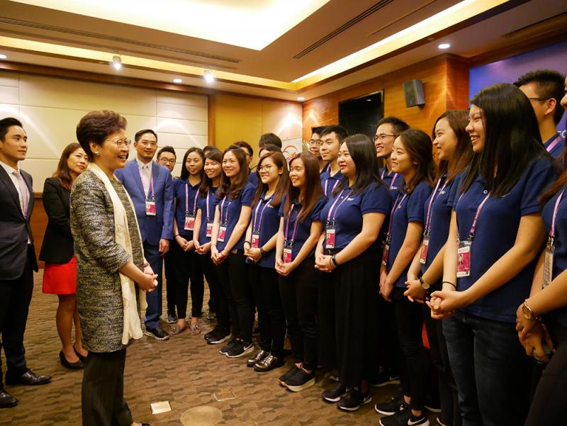 圖:林鄭月娥昨往看望在博鰲論壇當志願者的香港青年\大公報記者黃寶儀攝