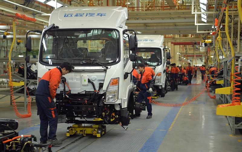 圖:四川某汽車製造公司整車組裝車間內一片繁忙/中新社