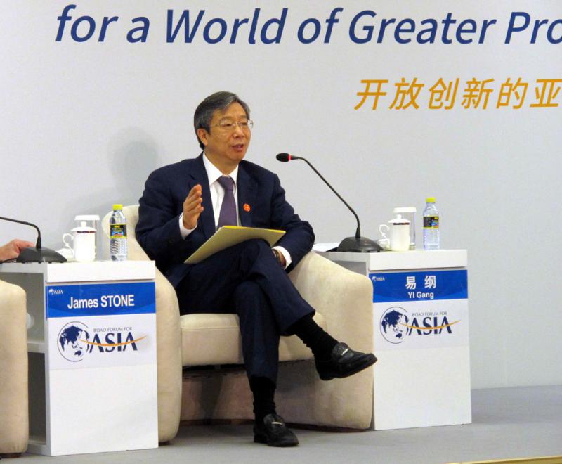 圖:中國人民銀行行長易綱昨日透露,11項中國金融開放措施將在年內落實\通訊員安莉攝