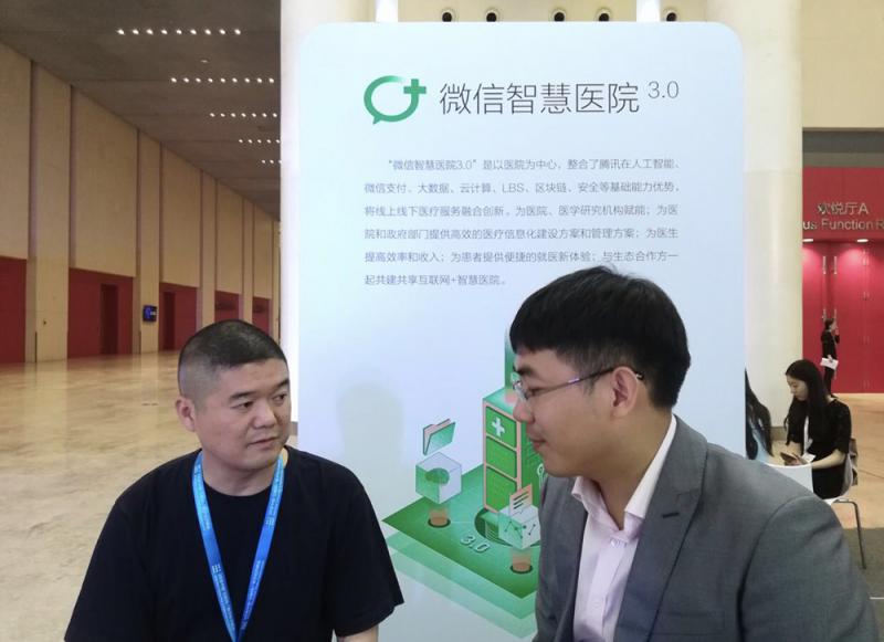 圖:四川一家醫院職員在峰會現場諮詢智慧醫療的搭建方式 網絡圖片