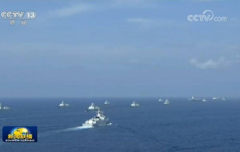 圖:受閱艦艇按作戰編組組成7個作戰群 網上截圖