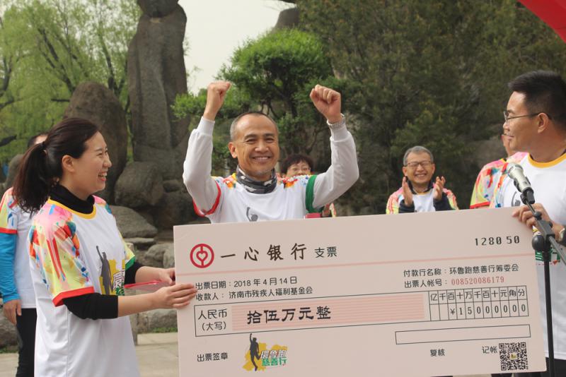 此次「環魯跑」還是一次愛心籌款行動。當天,劉宏章將在香港募集的15萬元人民幣愛心善款捐贈給濟南市殘疾人福利基金會。「有愛不孤單,有癌不孤單!」劉宏章希望通過「環魯跑」,為癌症人士跑出一條「彩虹路」。