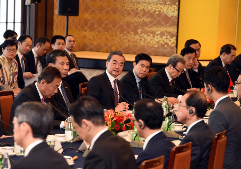 王毅說,雙方應推動「一帶一路」合作取得成果,將其打造成兩國合作的新亮點。雙方應共同推進東亞經濟一體化進程,加速進行中日韓自貿區和區域全面經濟夥伴關係協定談判,向着早日建成亞太自由貿易區的目標不斷邁進。雙方應共同反對貿易保護主義,共同維護多邊貿易體制,共同推動建設開放型世界經濟。