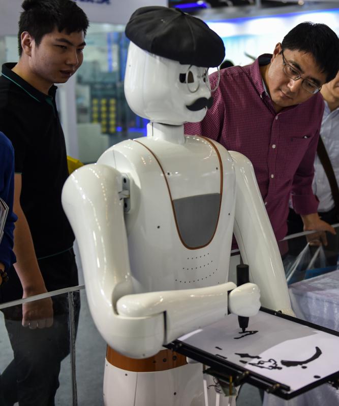 圖:中日可在創新領域加強合作。圖為2017年深圳高交會上,觀眾觀看機器人「作畫」 資料圖片