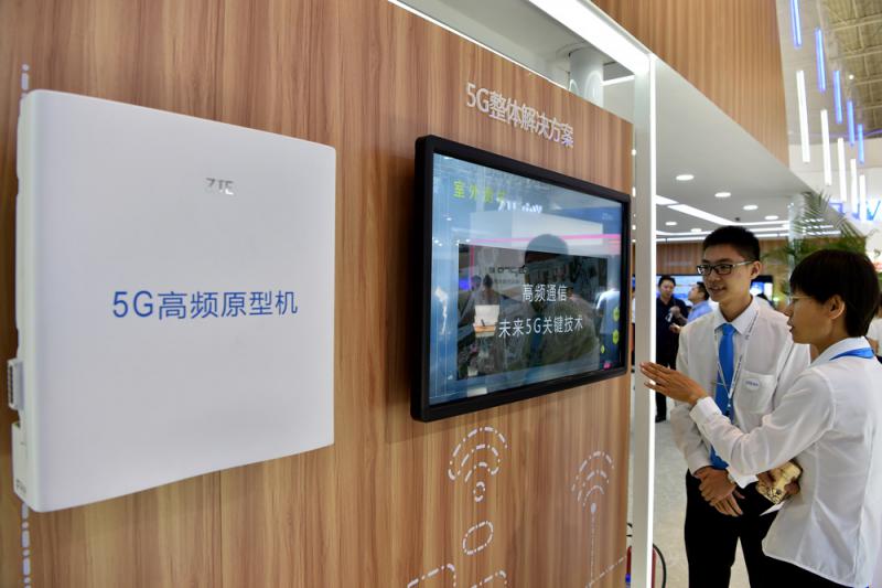 圖:中興公司在2016年中國國際信息通信展覽會展示5G研發成果/資料圖片