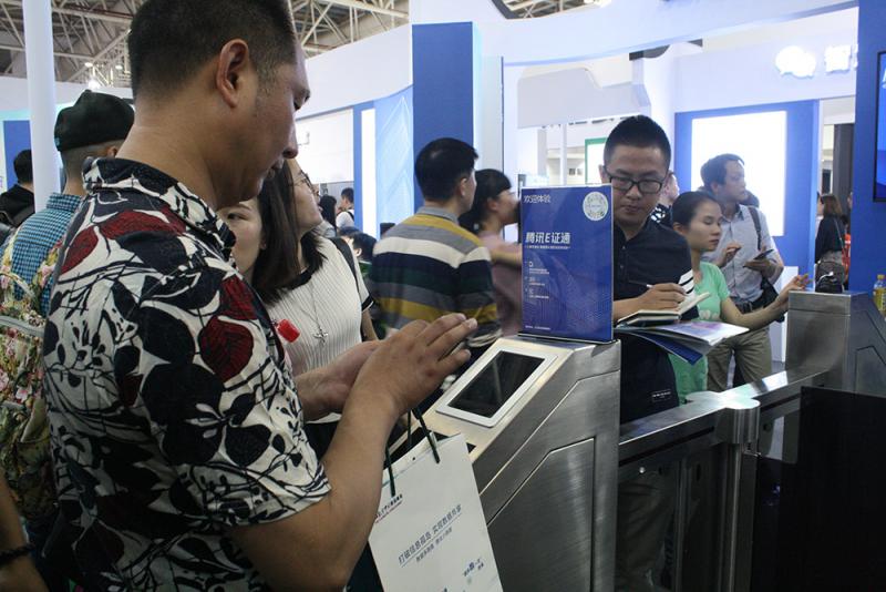 圖:與會者在數字中國建設峰會現場體驗騰訊E證通的操作 大公報記者蘇榕蓉攝